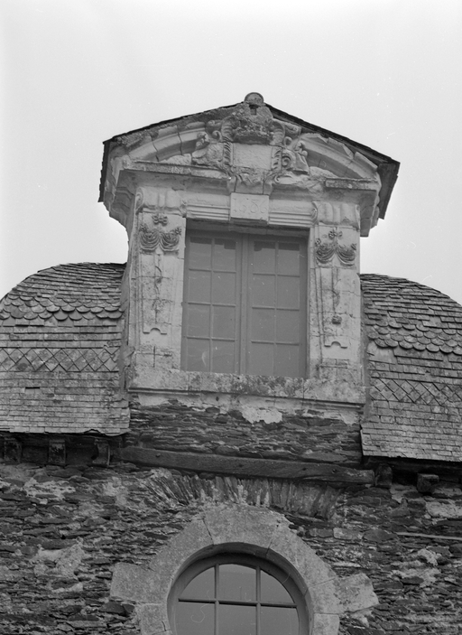 Château : lucarne portant la date 1686, élévation sud-est.Immatriculation
