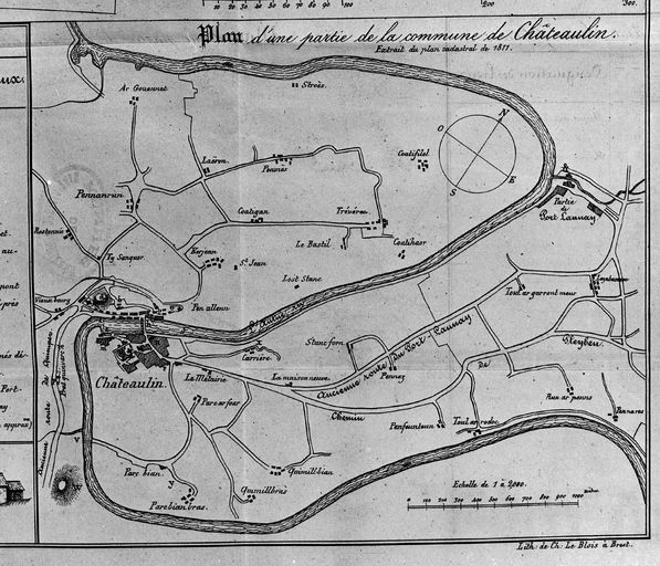 Plan d'une partie de la commune de Châteaulin. [à partir d'un] extrait du plan cadastral, 1811 ; échelle : 1 : 2000.