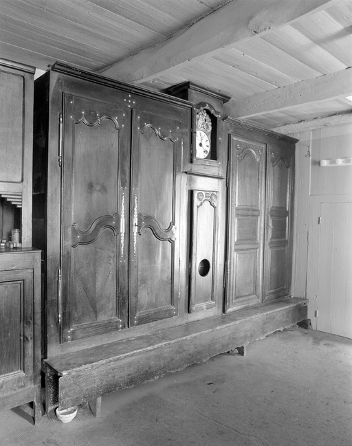 Mur nord, front des armoires 9 : armoires, horloge et "bank koste'n ti". (1978)