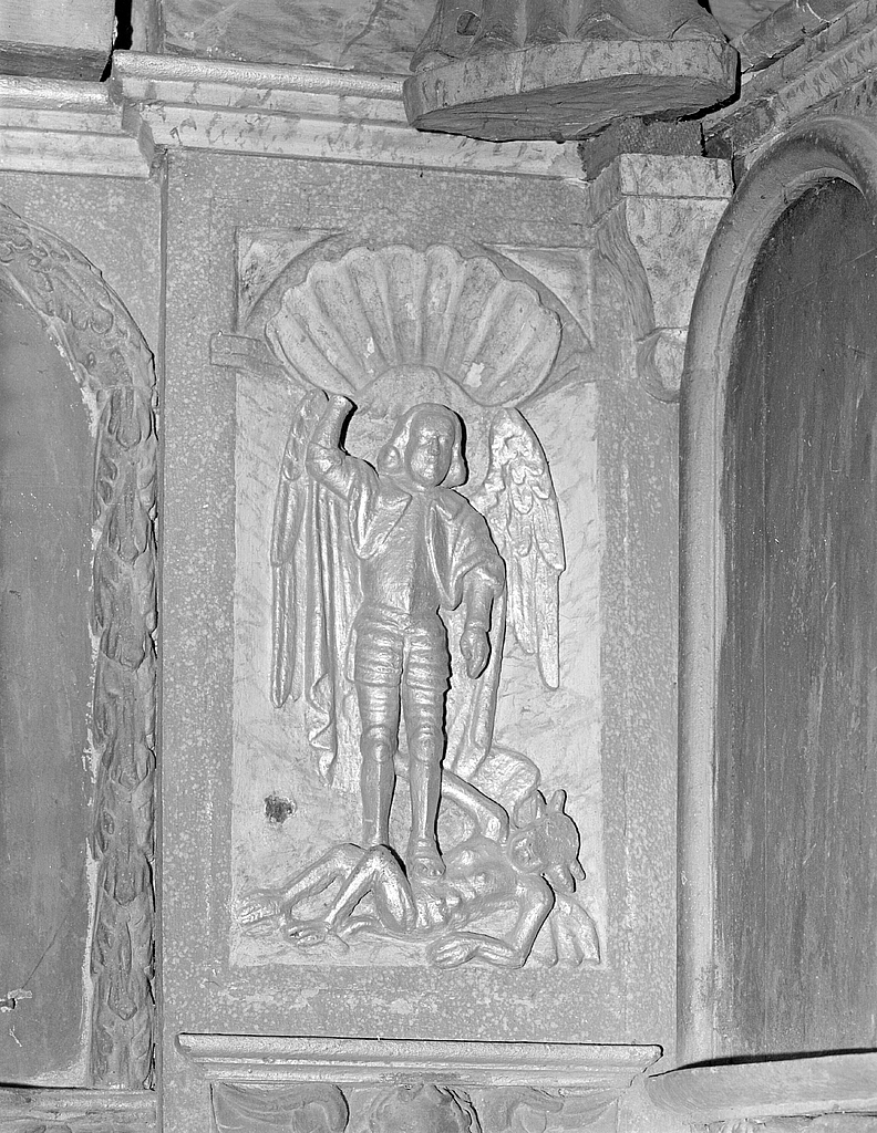 Panneau sculpté à gauche du tabernacle : saint MichelImmatriculation