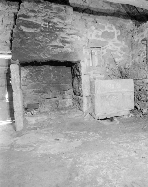 Grange dite "ti stern", pignon est. Cheminée et "bib" daté 1818. (1978)Immatriculation