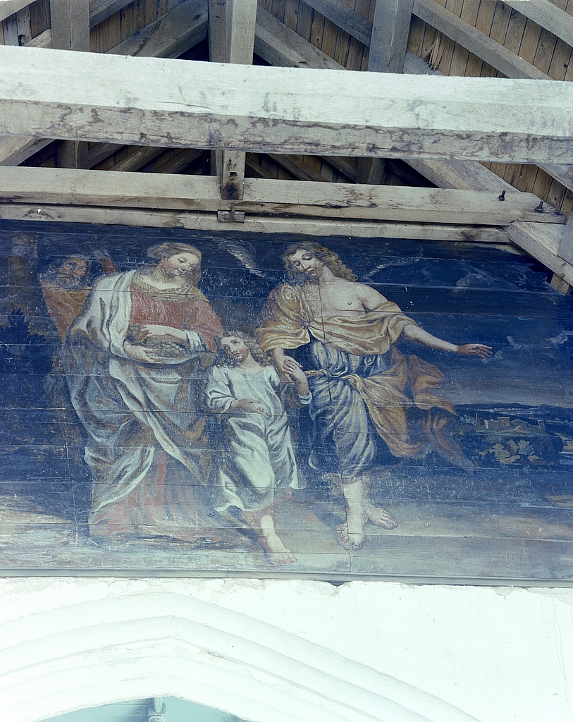 Peinture (décor intérieur) : sainte Famille (?), Ange Gardien (?), Retour d'Egypte (?), (anciennement peinture numéro 1), chapelle Saint-Tugen (Primelin),