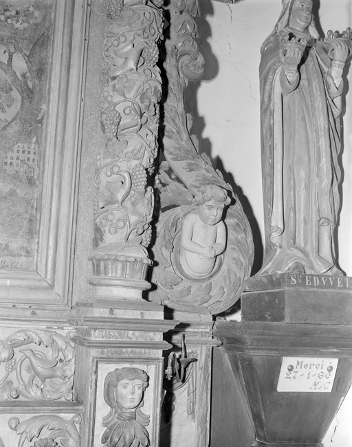 Détail, aileron d'épaulement avec putti en busteImmatriculation