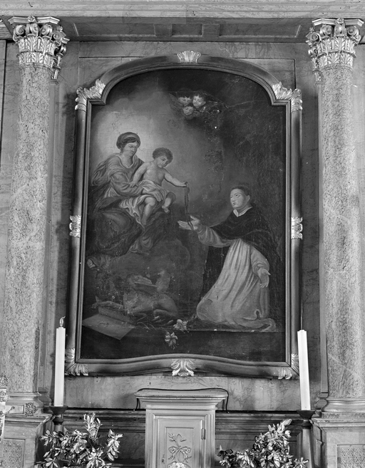 Tableau d'autel : Remise du rosaire à saint Dominique de Guzman (La Fontenelle fusionnée en Val-Couesnon en 2019),