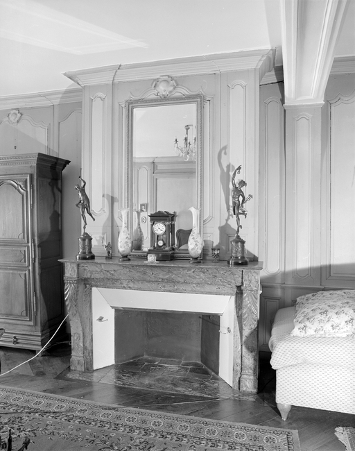 Vue générale de la cheminée à l'étage, pièce sud.Immatriculation