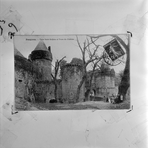 Porte Saint Sulpice et tour du château, vue générale, carte postale ancienne.Immatriculation