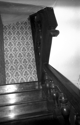 Vue intérieure : escalier en bois à balustresImmatriculation