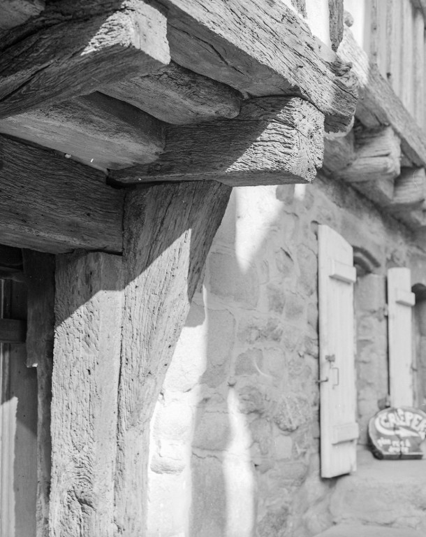 Deux pièces de bois - entretoises - camouflent le vide entre les solives et la sablière de chambrée.Immatriculation