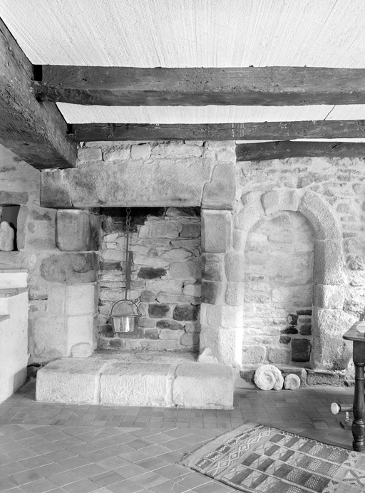 Vue générale de la cheminée avec chaudron et porte murée : mur droitImmatriculation