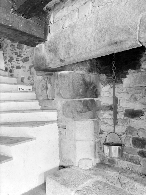 Vue de profil de la cheminée avec chaudron.Immatriculation