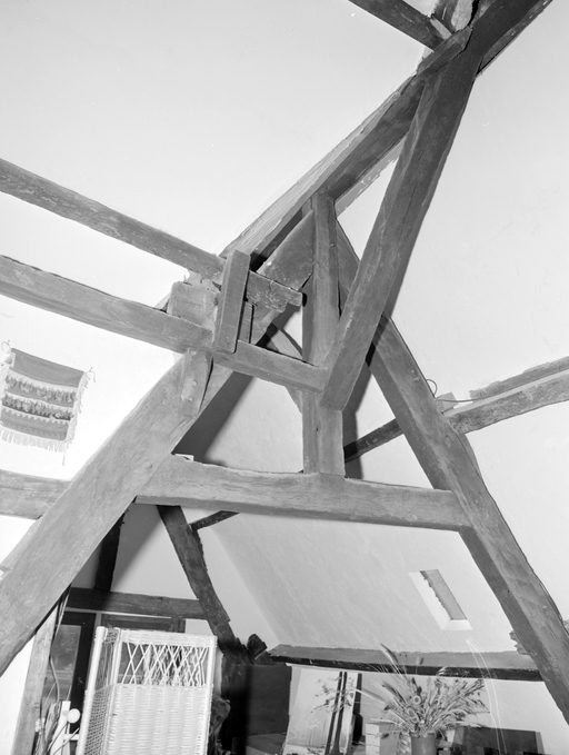 Charpente, ferme intermédiaire avec noue du toit perpendiculaire (1978).Immatriculation