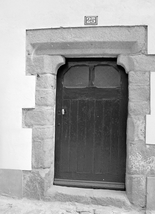 Elévation sur rue, porte à linteau sur coussinets.Immatriculation