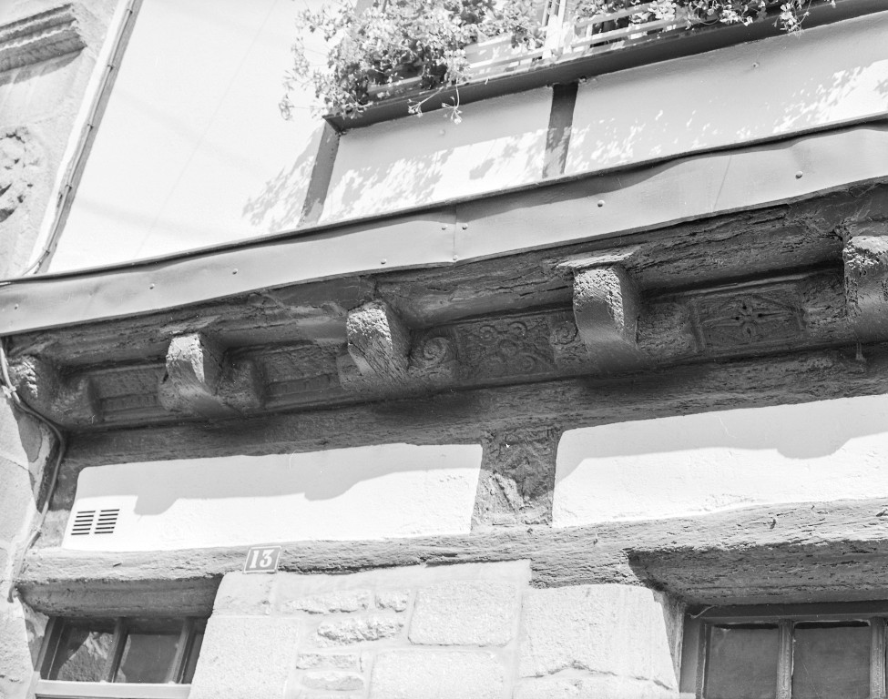 Entretoises de l'encorbellement inférieur à décor sculpté.Immatriculation