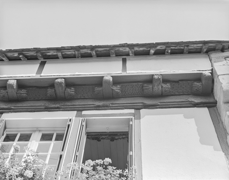 Entretoises de l'encorbellement supérieur à décor sculpté : partie droite.Immatriculation