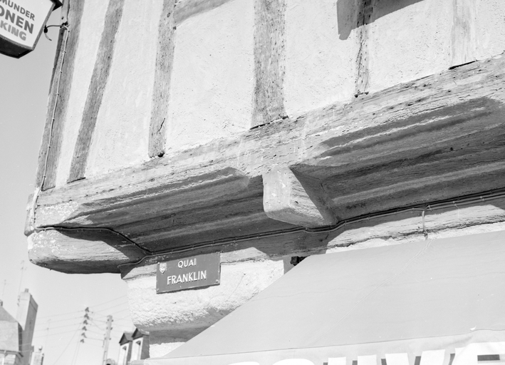 Maison, élévation ouest, sablière de chambrée moulurée.Immatriculation