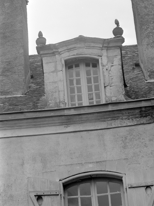 Manoir, élévation ouest, lucarne.Immatriculation