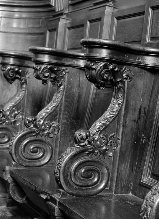 Stalles et lambris de choeur, accoudoirs.Immatriculation