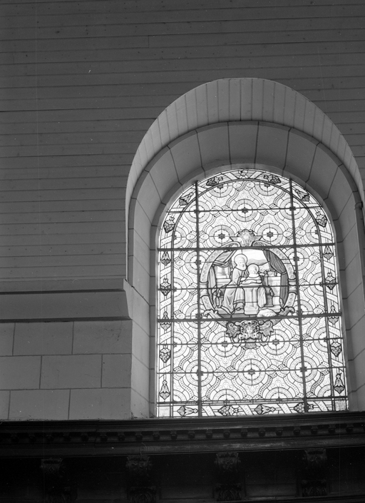 Ensemble de vitraux, vitrail a : l'éducation de la Vierge.Immatriculation