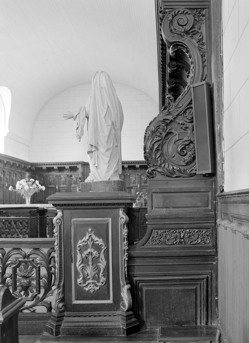 Stalles et lambris de choeur, volute à l'extrémité d'un long côté.Immatriculation