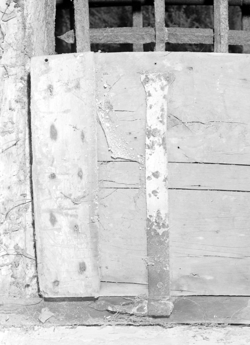 Cachot du rez-de-chaussée sud, détail de la porte.Immatriculation