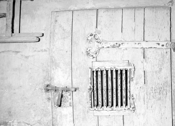 Cachot du rez-de-chaussée sud, détail de la grille et du verrou.Immatriculation