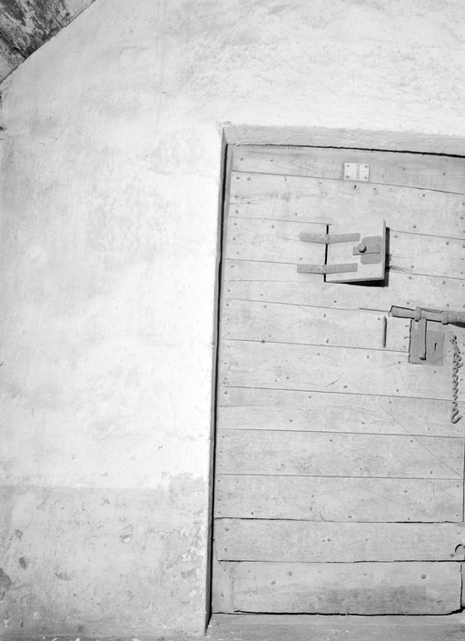 Cellule du comble, vantail de porte.Immatriculation