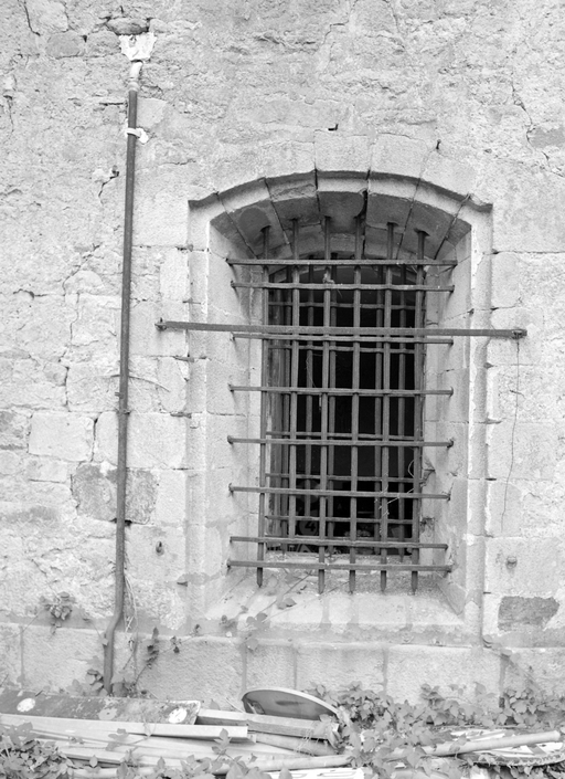 Elévation postérieure, détail d'une fenêtre de cachot.Immatriculation