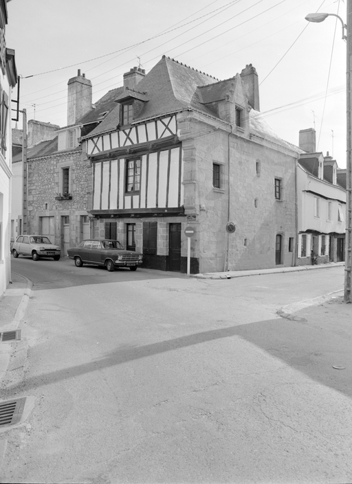 Maison d'angle en pan de bois et maçonnerie (état en 1978).Immatriculation