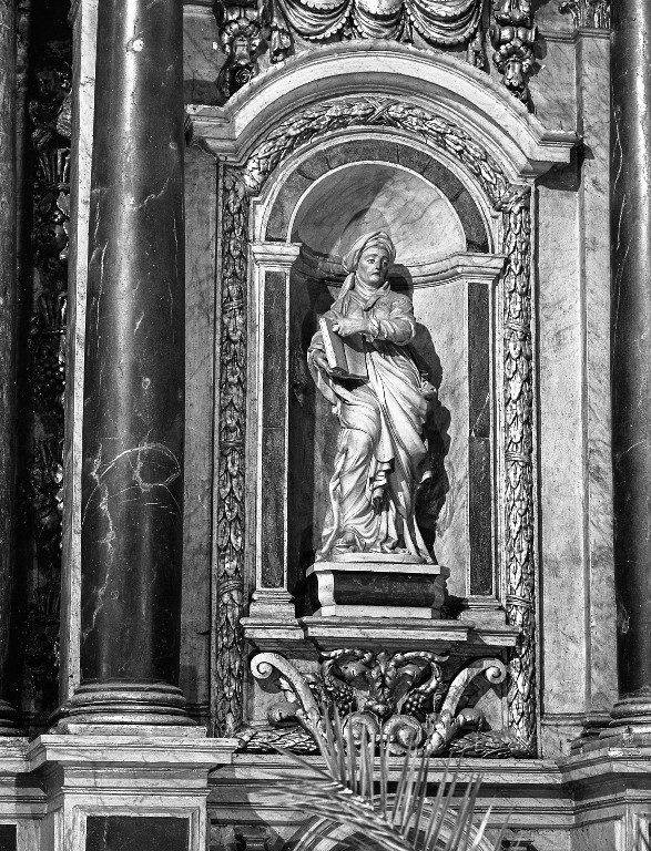 Niche inférieure droite : statue de Sainte-Anne.Immatriculation