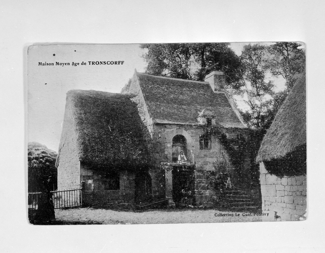 Canquiscren. Maison 3 (détruite), identifiée par erreur comme chaumière à Tronscorff. (reproduction carte postale collection Le Gunf Pontivy), maisons Moyen Age de Tronscorff.Immatriculation