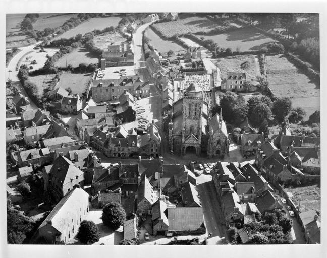 vue aérienne de la ville, avec l'égliseImmatriculation