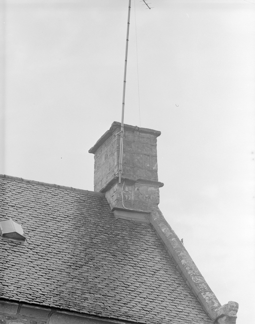 Corps de logis principal, souche de cheminée ouest. Vue prise du nord. (1979)Immatriculation