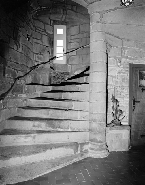 Logis, rez-de-chaussée, départ de l'escalier. (1979)Immatriculation