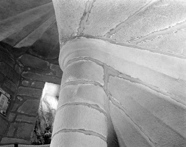 Logis, escalier à vis, marche formant chapiteau. (1979)Immatriculation