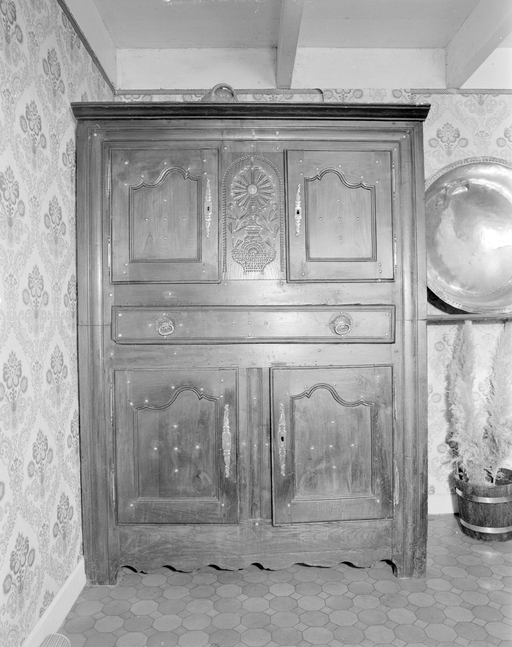 Buffet 3 à deux corps, vue générale et décor religieux (ostensoir). (1979)Immatriculation