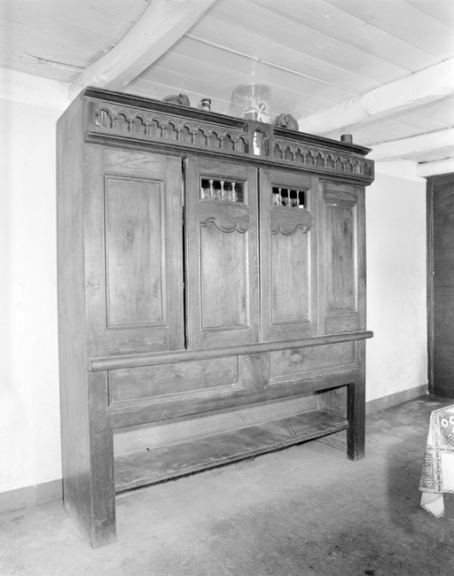 Lit-clos 1, vue générale de la façade et niche à Vierge sur la traverse supérieure. (1979)Immatriculation
