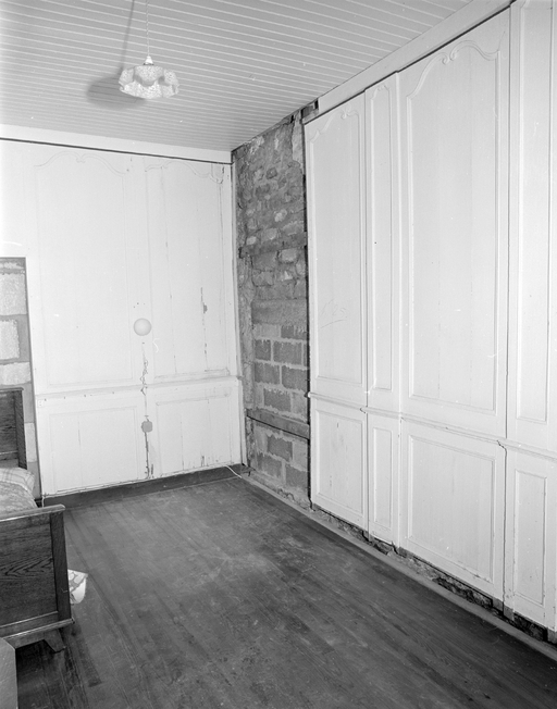 Etage, chambre, détail lambris. (1979)Immatriculation