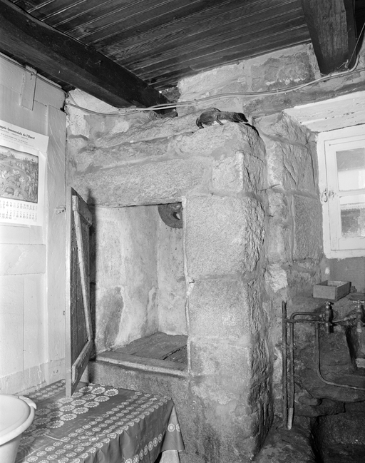 Le Poulley, ferme 1, puits intérieur, auge et écoulement d'eau. (1979)Immatriculation