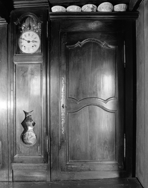 Armoire à lait "ar arbel lëz" et horloge, vue générale. (1979)Immatriculation