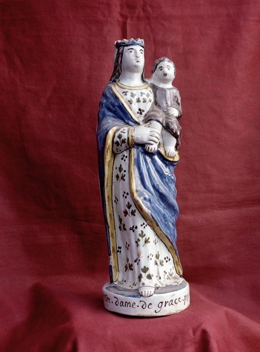 Drustuilh 2 daté 1871, détail de la statue de la Vierge à l'Enfant dans la niche. (1979)Immatriculation