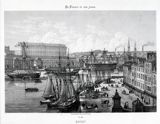 Vue du port de Brest depuis la quai Tourville dessiné d'après nature, n° 136, par C. Testard, 1ère moitié 19e siècleImmatriculation