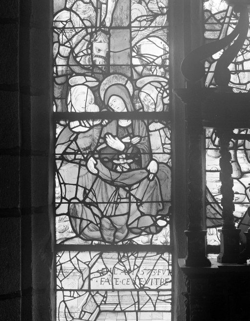 Verrière : crucifixion, verrière à personnages, église paroissiale Saint-Paban (Pouldreuzic),
