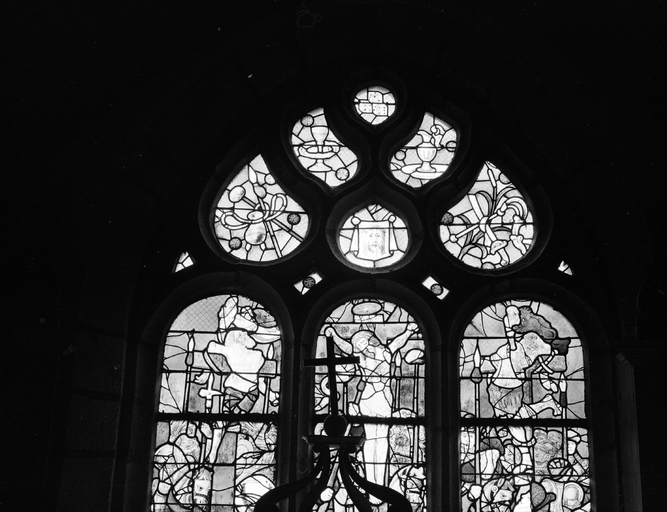 Verrière : crucifixion, verrière à personnages, église paroissiale Saint-Paban (Pouldreuzic),