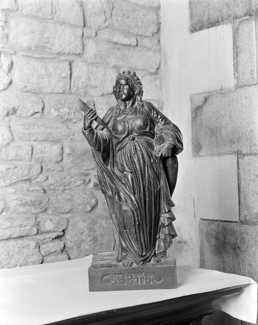 Statue (statuette) : sainte Barbe, église paroissiale Saint-Annouarn (Peumérit),