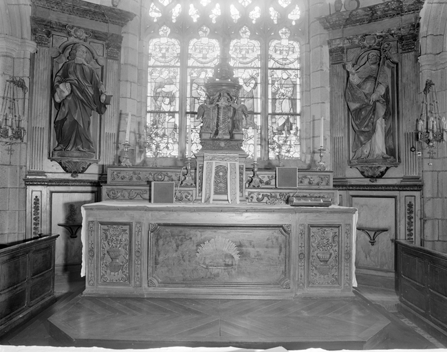 Autel, retable (maître-autel, autel tombeau, retable cadre), église paroissiale Saint-Annouarn (Peumérit),