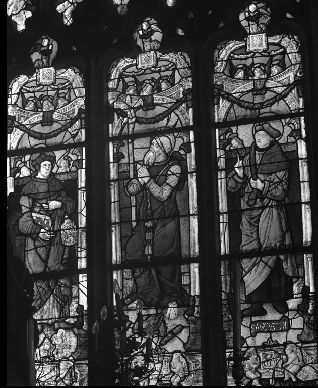 Verrière : les Docteurs de l'église, verrière à personnages, église paroissiale Saint-Annouarn (Peumérit),