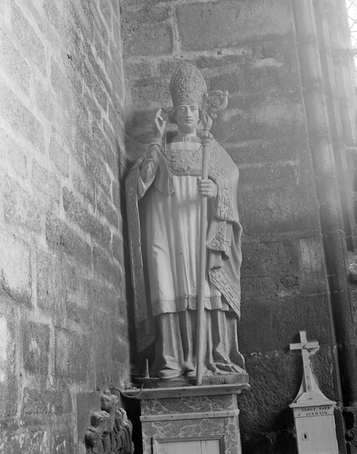 Statue (d'applique, figure colossale) : saint Germain, chapelle Saint-Germain (Plogastel-Saint-Germain),