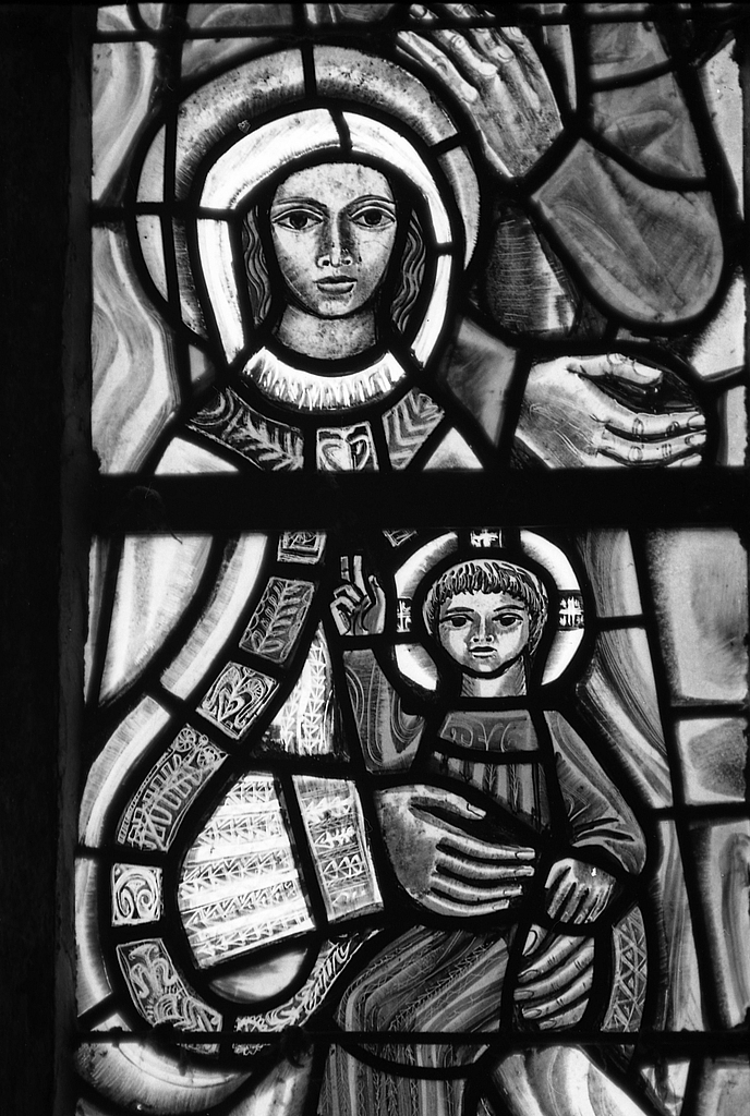 Verrières (7) : Apparition de la Vierge à sainte Bernadette, saint Herbot et saint Thelleau, Nativité aux bergers et aux mages, Annonciation, saint Corentin et saint Paban (1 à 7), verrières à personnages, église paroissiale Saint-Paban (Pouldreuzic),