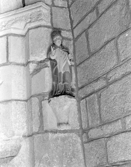 Statue (statuette, d'applique) : saint évêque (1), chapelle Saint-Laurent ou Notre-Dame-de-Bonne-Nouvelle (Goulien),