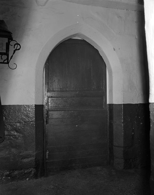 Logis, rez-de-chaussée. Couloir, refend, porte en tiers point. (1979)Immatriculation